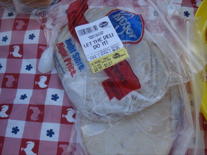 If you can’t tell from the picture, that’s a pound of turkey and a pound of ham, both purchased around 7:30 AM. By 10:30 AM, both meats were the same color, a mysterious bluish-silver shade of grey. I suppose the stuff just didn’t agree with the weather.