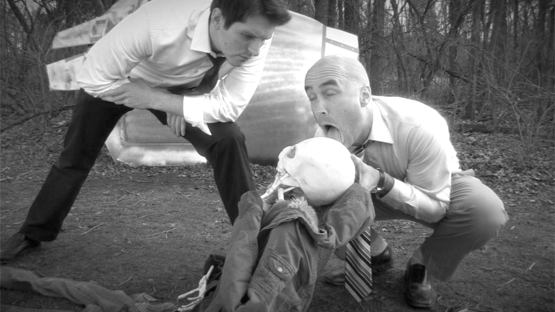 Somewhere around this time last year, we pulled the trigger and formally decided to go black and white for the final cut. Sure, some of the decision was to help save time (converting to black and white wound up being so much faster than color correcting every shot, one by one), and some of it was to help hide the flaws in production (a few green screen shots had some rough edges in color, but those edges disappeared in the black and white version). But most of it was because we just like black and white and felt the movie worked best as an oddball throwback if we ditched the color.