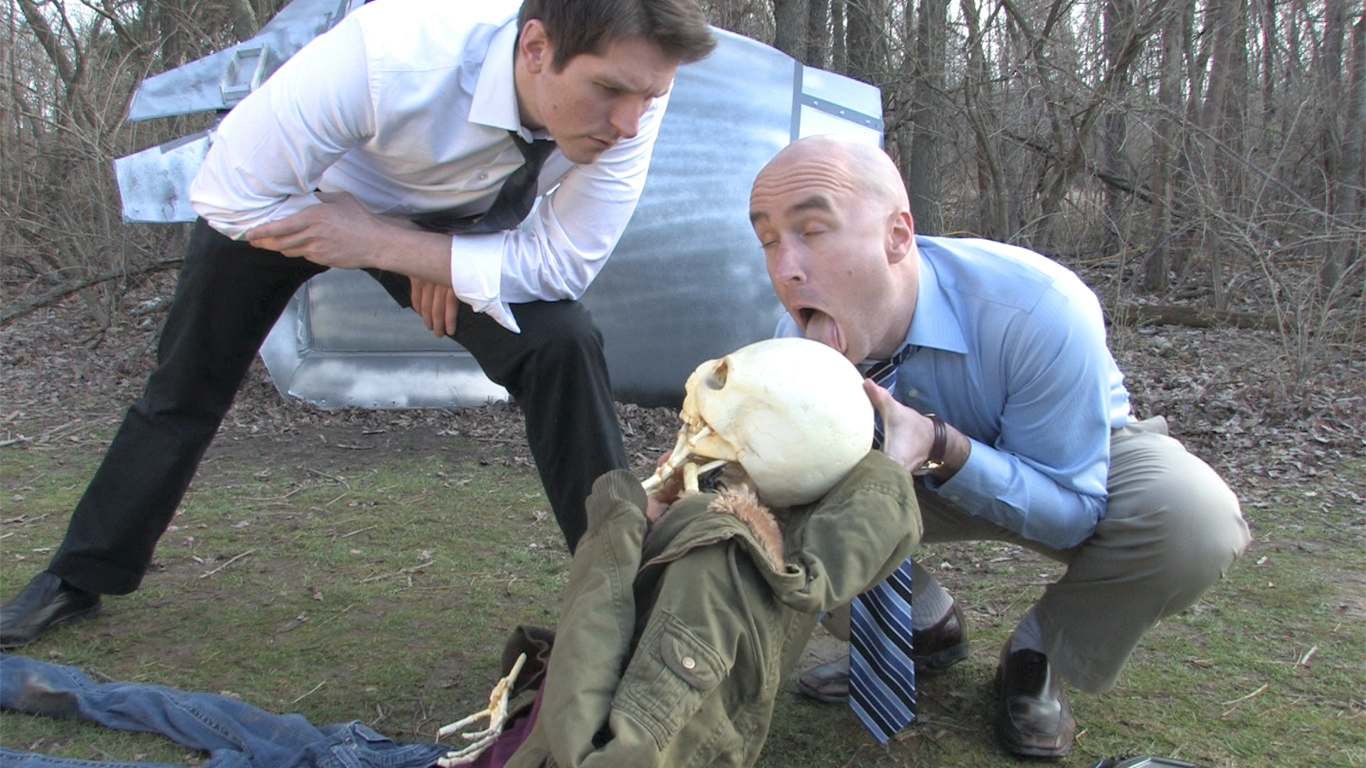 Final Cut Pro has some decent choices for color conversion, but they tended to look a bit flat; our shot-on-video image still looked shot on video. Luckily, Matt found a killer plug-in from a company out of Poland called motionVFX. (Yup, Inhumanwich! is officially an international production. Sort of.) The plug-in, New Noir (part of their mLooks plug-in, and no, we weren’t asked to shill, we just wanted to share the love), was so perfect for our needs, a simple drag-and-drop was all that was needed. The expected need to tweak the filter levels on some scenes never materialized; each shot looked the way we wanted. (A nifty bonus was the hazy glow and dollop of grain the filter adds, which we didn’t know we wanted until we saw it.)